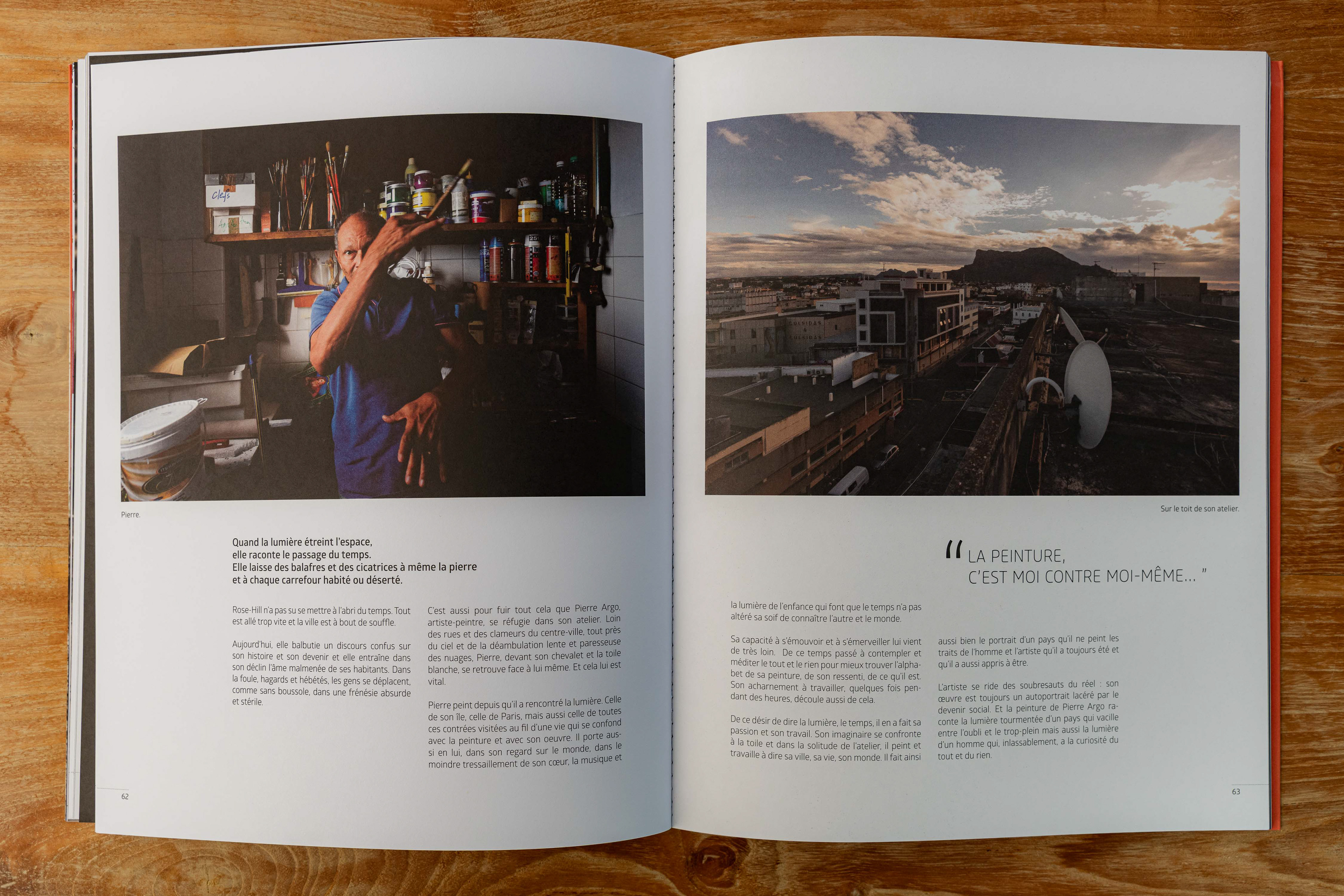 Portrait de l'artiste plasticien et photographe Pierre Argo dans son atelier de Rose-Hill. Maurice 2017