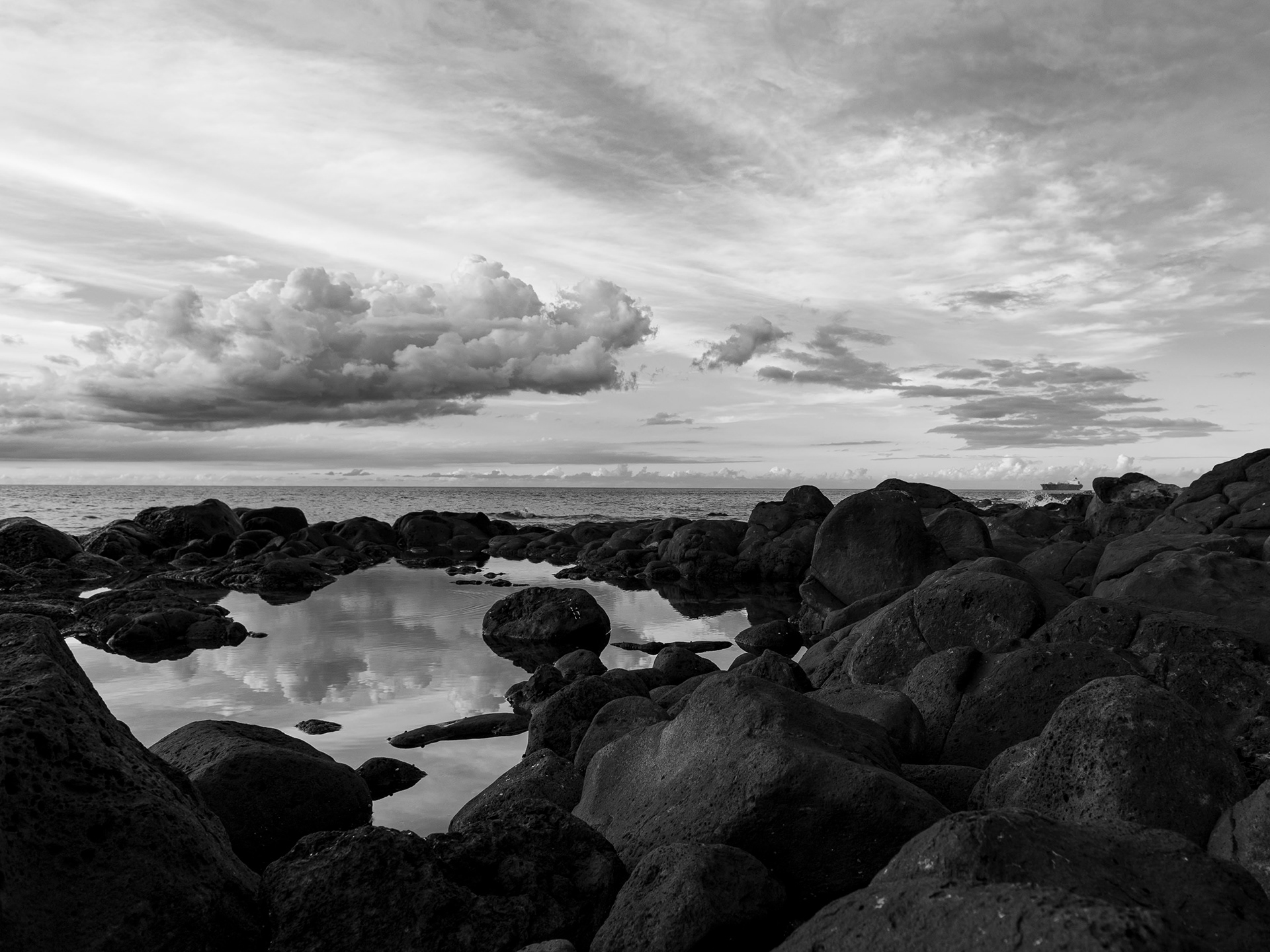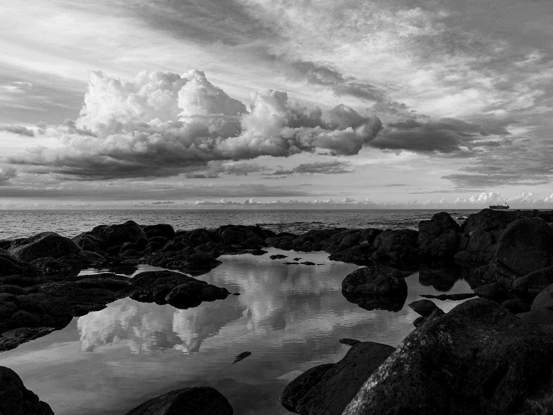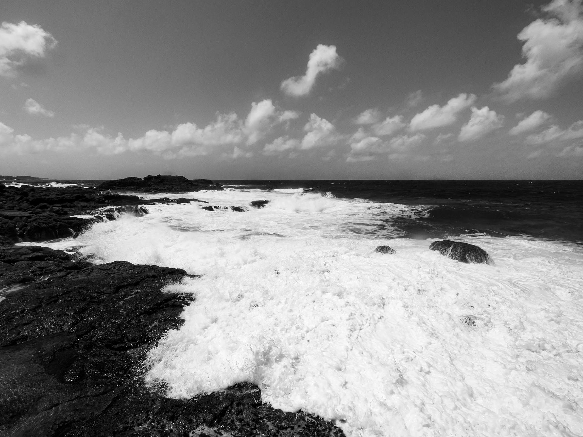 Première exposition solo de photographie d'art, présentée en août 2011 au Meltin' Potes à Moka. Elle réunit une sélection d'images atypiques du littoral mauricien, loin des représentations traditionnelles. La série explore l’interaction entre les éléments naturels. L’ambiguïté et la force brute du littoral mauricien se détachent ici des conventions touristiques. Les images s'éloignent des code de la carte postale tropicale et tentent de redéfinir la frontière entre ciel et mer. L'écume parfois explosive et la réflexion des nuages s'entremellent